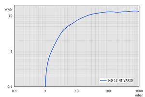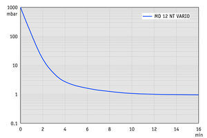 These oil-free diaphragm pumps are particularly powerful pumps for the evacuation and pumping of non-aggressive gases. The three-stage design combines particularly high pumping, with excellent ultimate vacuum of up to 2 mbar, and up to 1.5 mbar with the VARIO version. It provides precise control and always consists of the pump and the CVC 3000 vacuum control unit with an external indicator head. For use as a booster pump, it has a continuous adaptation of its speed for optimum life. The highly flexible, fabric-reinforced double diaphragm made of FKM provides increased operating life at speed below engine speed.